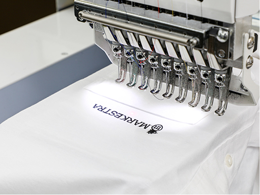 お客様によって購入いただいた商品への刺繍やプリント加工が対応可能。