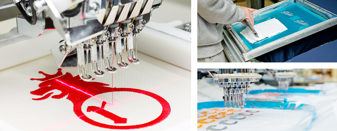 お客様によって購入いただいた商品への刺繍やプリント加工が対応可能。