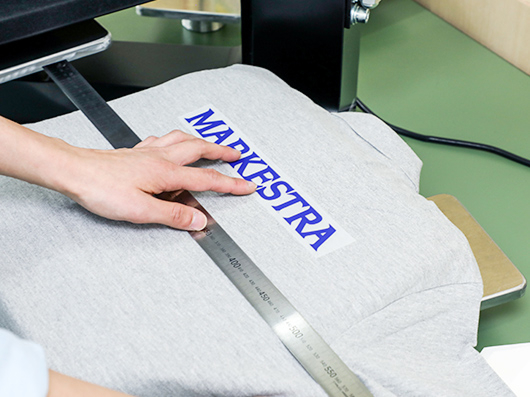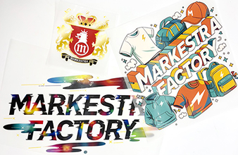 専用のフィルムにデザインを印刷し、ウェアなどへ熱と圧力でデザインをプリントする方法なので、型代なしで作成が可能。