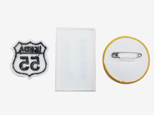 昇華転写ワッペンは、光沢のあるサテン生地のみになります。