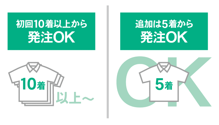 | 最小ロット | 10着~(追加5着~) | 10着 | 5着 |